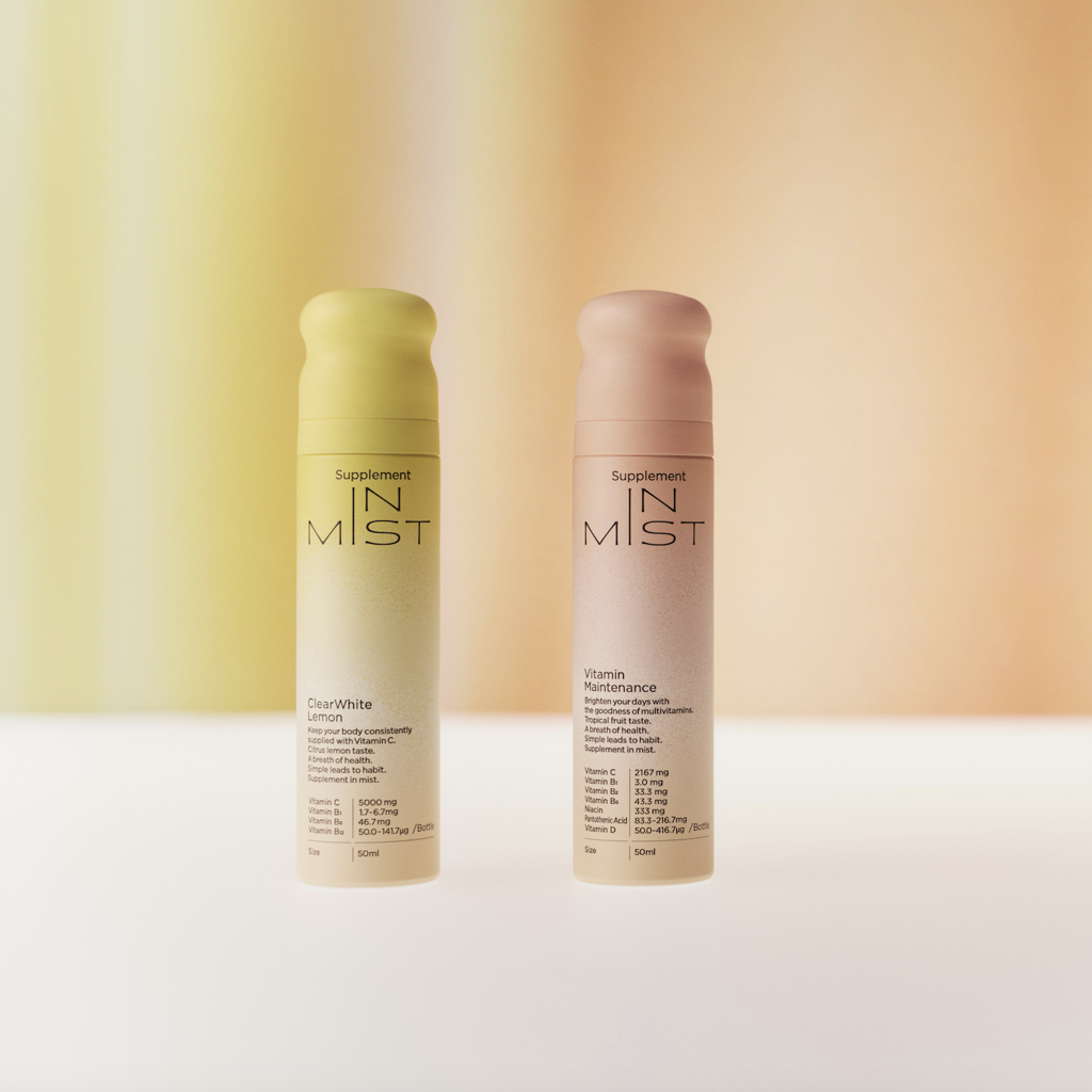 美容や健康に不可欠な栄養素であるビタミン。実はビタミンは数時間で体外に排出されるため、1日1回の摂取では不十分。本当に大切なのは“こまめな補給”。でも錠剤やカプセルでは続けにくいし、成分も劣化しやすい。IN MISTは、ミストという新しい形でこの課題を解決しました。水も不要、外出先でも美味しくワンプッシュ。液体ミストですぐに吸収。独自開発の2重構造ボトルで常に高品質のまま届けます。美と健康をワンプッシュで、これがサプリの新常識!